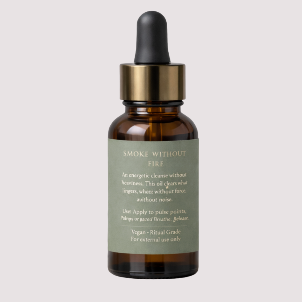 Smoke Without Fire is a ritual oil created for moments of intention, reflection, and inner alignment. Its presence is subtle yet profound, evoking quiet strength, transformation, and what moves beneath the surface. Designed to accompany prayer, meditation, altar work, or sacred pauses, this oil supports focus, grounding, and clarity without spectacle.