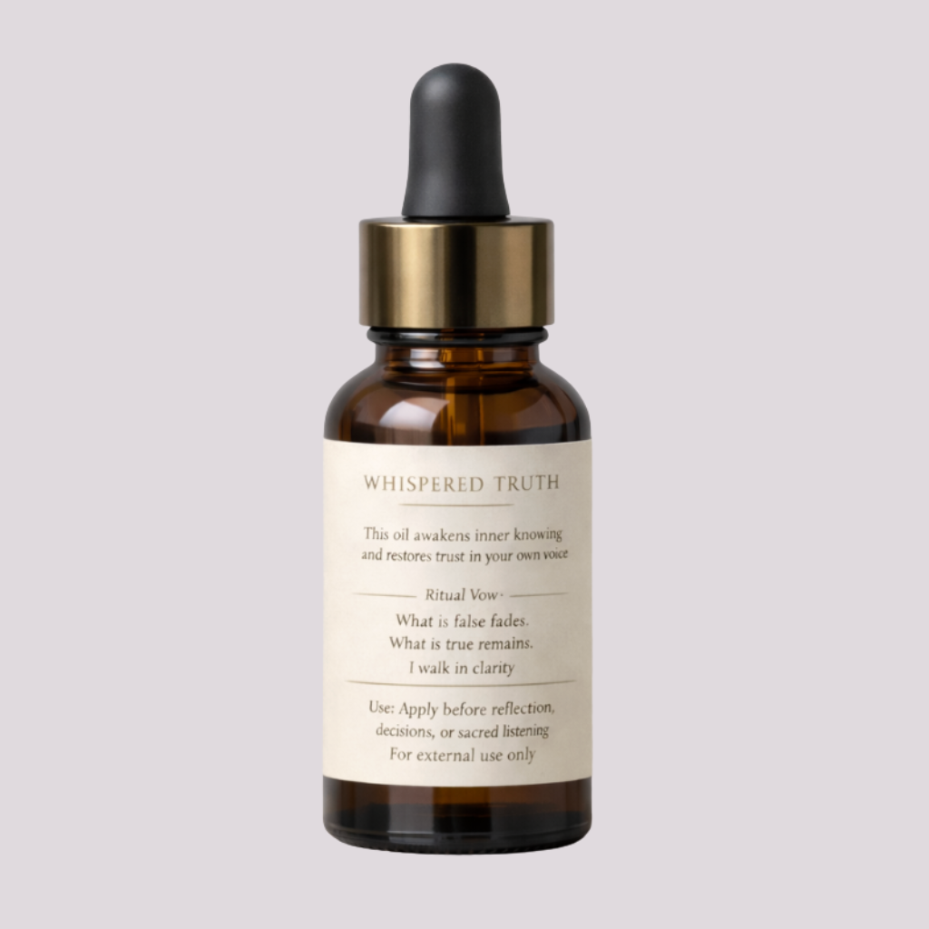 Whispered Truth is a ritual oil created to support clarity, inner listening, and honest alignment. Designed for moments of reflection and intention, it invites stillness and discernment, helping truth emerge gently rather than forcefully. Used in prayer, meditation, journaling, or altar rituals, this oil accompanies moments when quiet awareness leads the way.